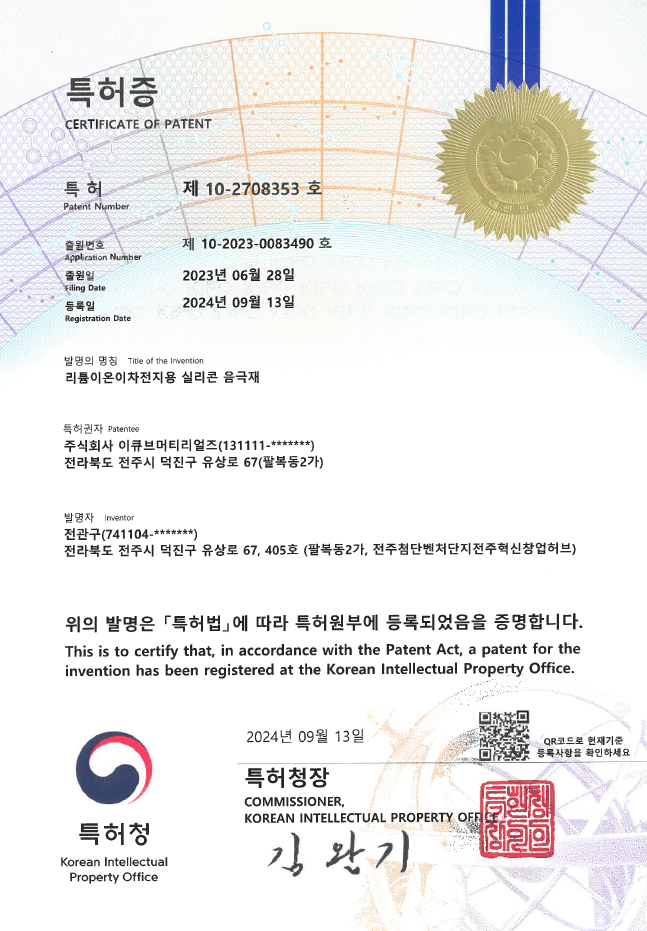 2024 PCT-KR2024-015772 다결정 판상 실리콘 입자를 포함하는 리튬이온이차전지용 실리콘 음극재