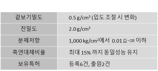 1. 흑연과 유사 크기로 흑연 대체가 용이하다.