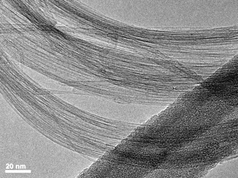 단층벽 탄소나노튜브는 1 ~ 2nm의 직경을 가진 aspect ratio 1,000 이상의 섬유상 도전재입니다. SWCNT는 MWCNT 대비 섬유 수가 50배 이상 많아서 도전재 첨가량을 1/5로 줄이고, 양극재와 음극재 함량과 수명을 동시에 늘려주는 고성능화 첨가재입니다. 하지만 순수 SWCNT는 가격인 MWCNT의 10배 이상을 높아서 경제성이 크게 떨어집니다.